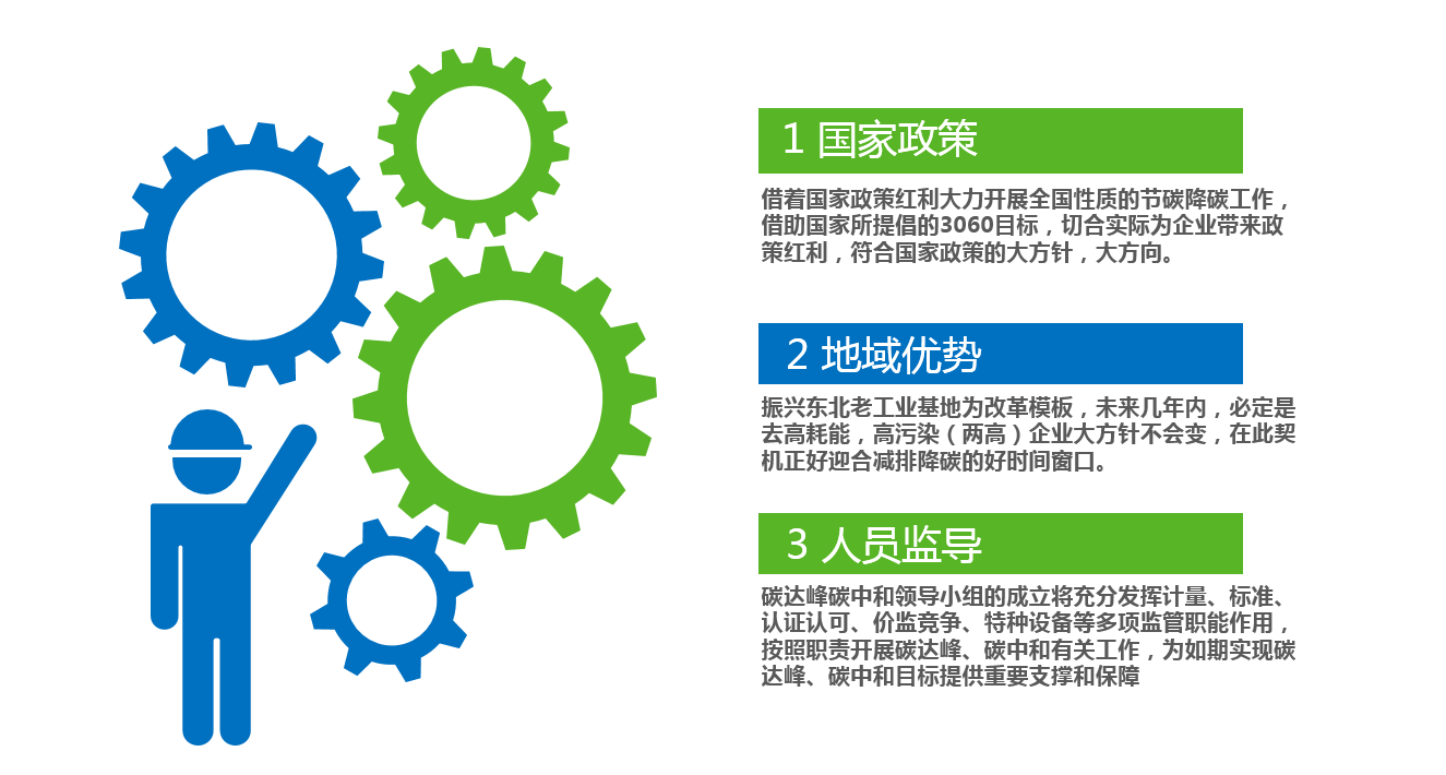 借著國(guó)家政策紅利大力開(kāi)展全國(guó)性質(zhì)的節(jié)碳降碳工作,借助國(guó)家所提倡的3060目標(biāo),切合實(shí)際為企業(yè)帶來(lái)政策紅利,符合國(guó)家政策的大方針,大方向。